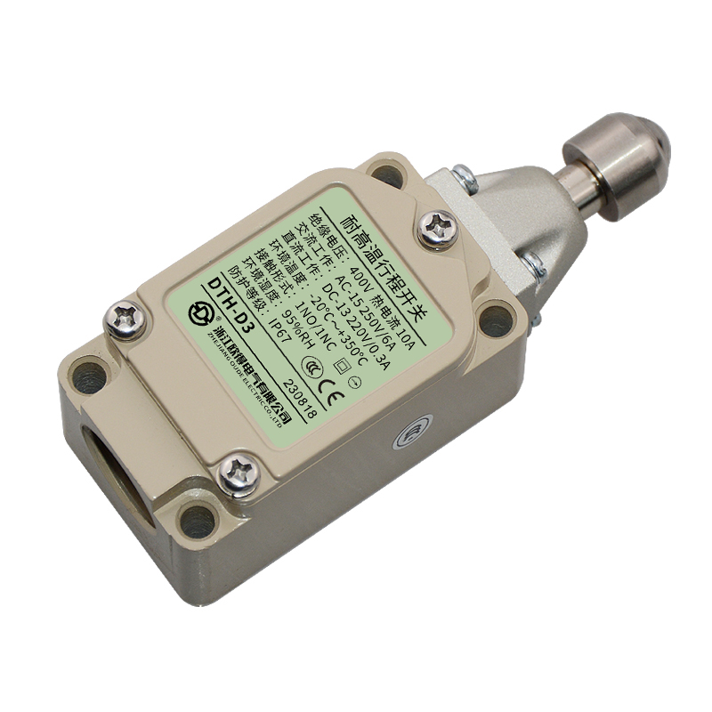 • DTH-D3耐高溫行程開(kāi)關(guān),頂部球式·柱塞型、通用直立型,長(zhǎng)壽命2回路限位開(kāi)關(guān)。適用于鋼鐵、焦化、電廠、紡織、醫(yī)療、化工、鋁材、塑料、玻璃、輪胎等高溫加工機(jī)械設(shè)備,作位移電路通斷信號(hào)檢測(cè)控制。