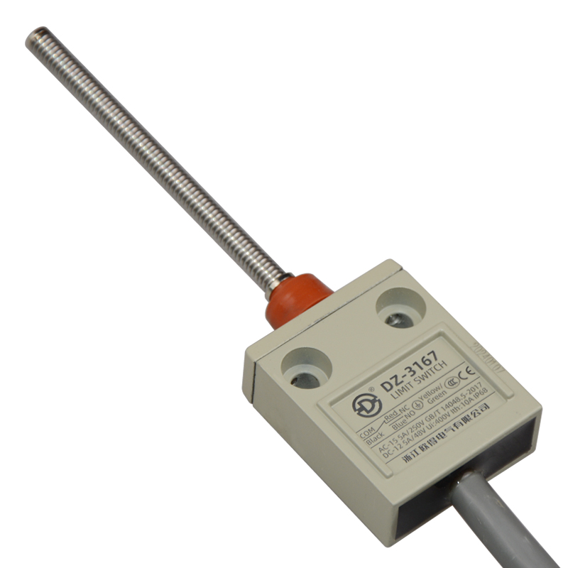 • DZ-3167防水行程開關(guān),盤簧型,萬(wàn)向式,通用直立型,小型、薄形、IP68防護(hù)等級(jí),樹脂與耐油軟線融合牢固,高度密封性兼具的緊湊型限位開關(guān)。適用于積水、潮濕環(huán)境下的機(jī)械設(shè)備,作位移電路通斷信號(hào)檢測(cè)控制。