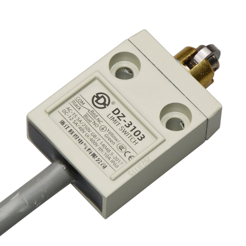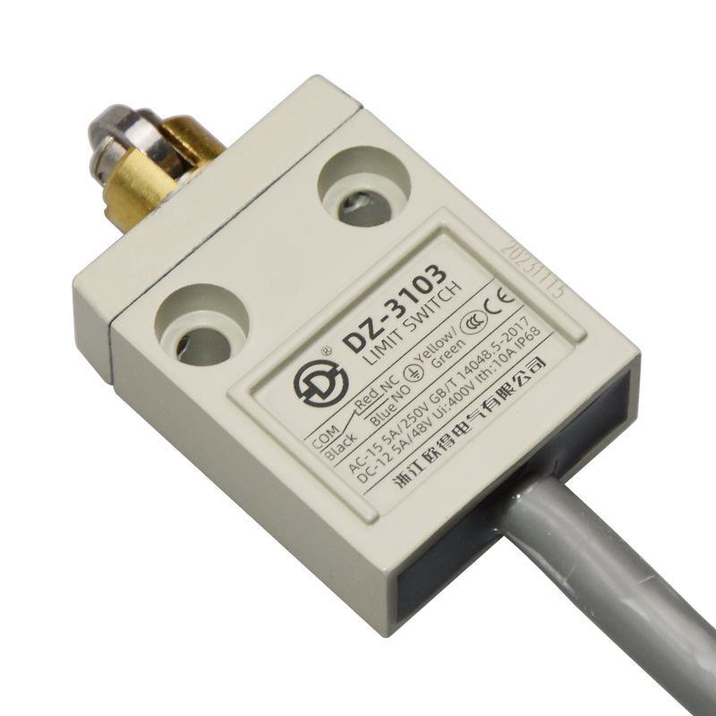 • DZ-3103防水行程開關(guān),橫向滾輪柱塞式,通用直立型,小型、薄形、IP68防護(hù)等級(jí),樹脂與耐油軟線融合牢固,高度密封性兼具的緊湊型限位開關(guān)。適用于積水、潮濕環(huán)境下的機(jī)械設(shè)備,作位移電路通斷信號(hào)檢測(cè)控制。