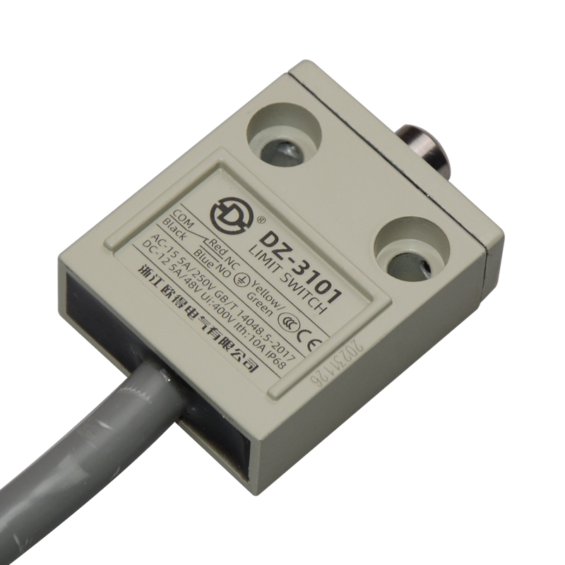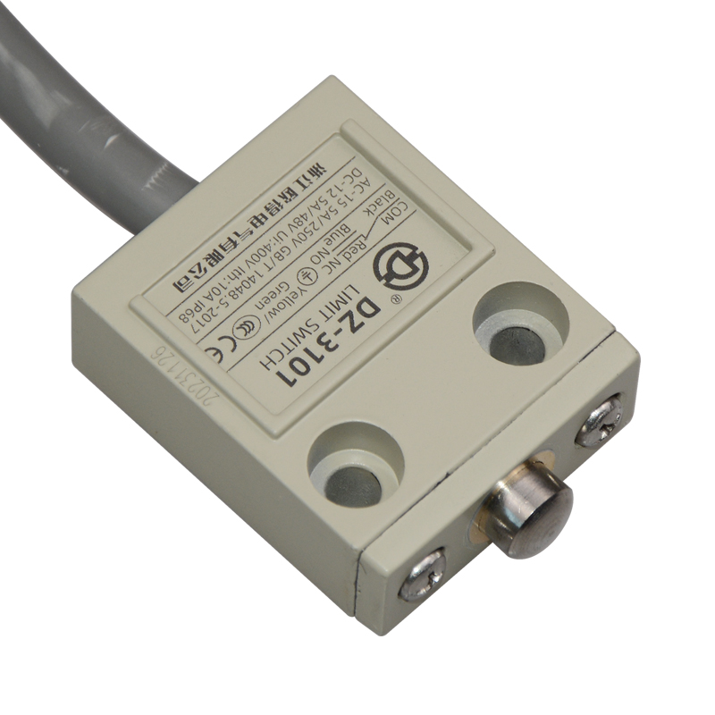 • DZ-3101防水行程開(kāi)關(guān),針狀柱塞式,通用直立型,小型、薄形、IP68防護(hù)等級(jí),樹(shù)脂與耐油軟線融合牢固,高度密封性兼具的緊湊型限位開(kāi)關(guān)。適用于積水、潮濕環(huán)境下的機(jī)械設(shè)備,作位移電路通斷信號(hào)檢測(cè)控制。