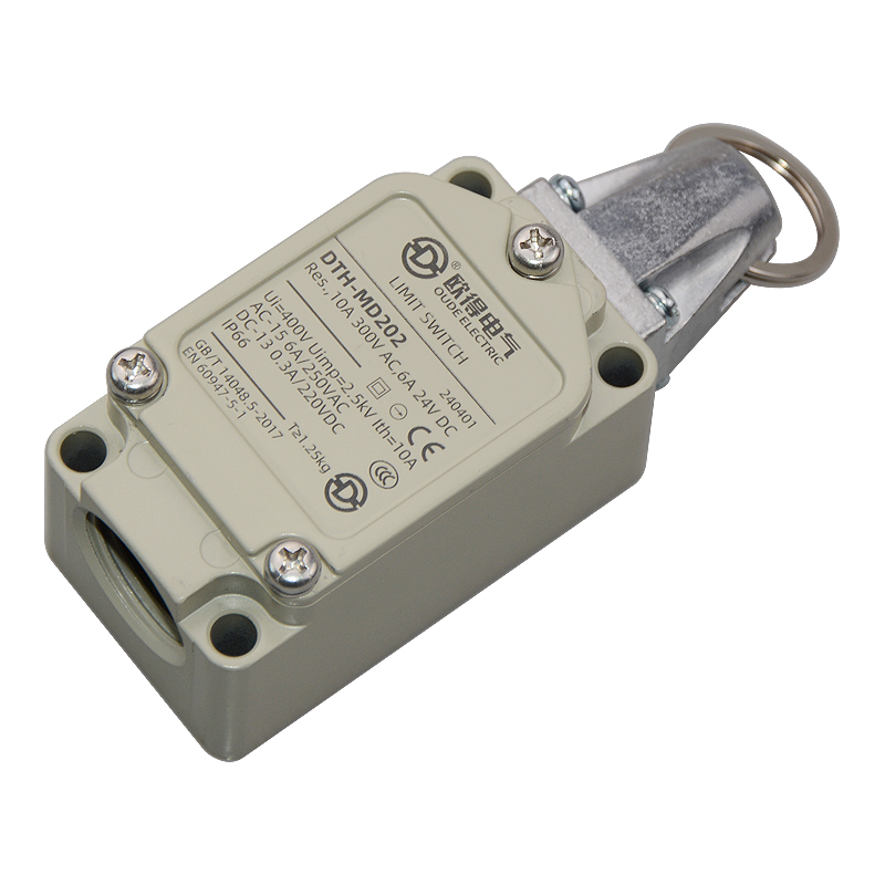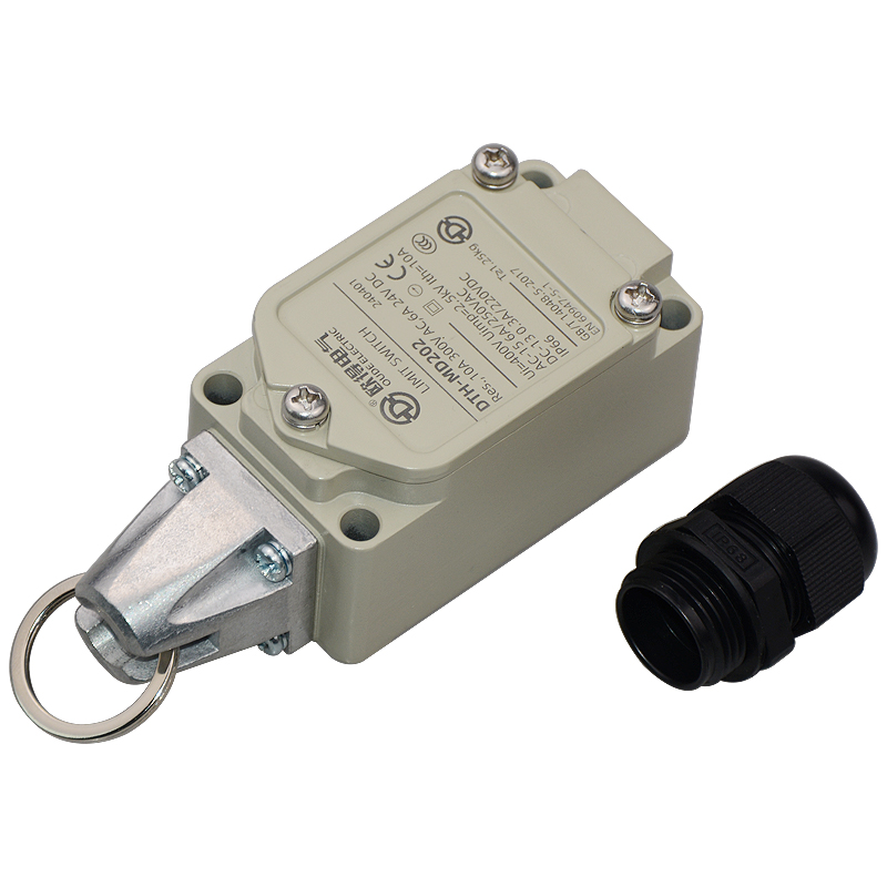 • DTH-MD202安全拉繩開關(guān),拉動式、自動復(fù)位,2回路(1常開1常閉),金屬殼體,堅固耐用。主要控制輸送帶、流水線急停限位。額定絕緣電壓400伏,發(fā)熱電流10安培,交流工作電壓250伏、工作電流6安培,直流工作電壓220伏、工作電壓0.3安培,防護等級IP66(安裝電纜防水接頭后)。