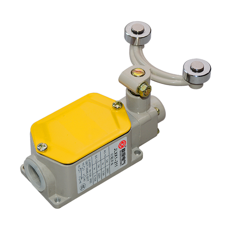 • JLXK1-211行程開(kāi)關(guān),雙輪叉式鎖定型,2回路,1常開(kāi)1常閉,歐得限位開(kāi)關(guān)。該行程開(kāi)關(guān)適用于絕緣電壓400伏、發(fā)熱電流10安培、交流工作電壓380伏電流0.8安培、直流工作電壓220伏電流0.15安培的控制電路中,將機(jī)械信號(hào)轉(zhuǎn)變?yōu)殡姎庑盘?hào),用來(lái)控制機(jī)械運(yùn)動(dòng)的行程、速度或程序控制。