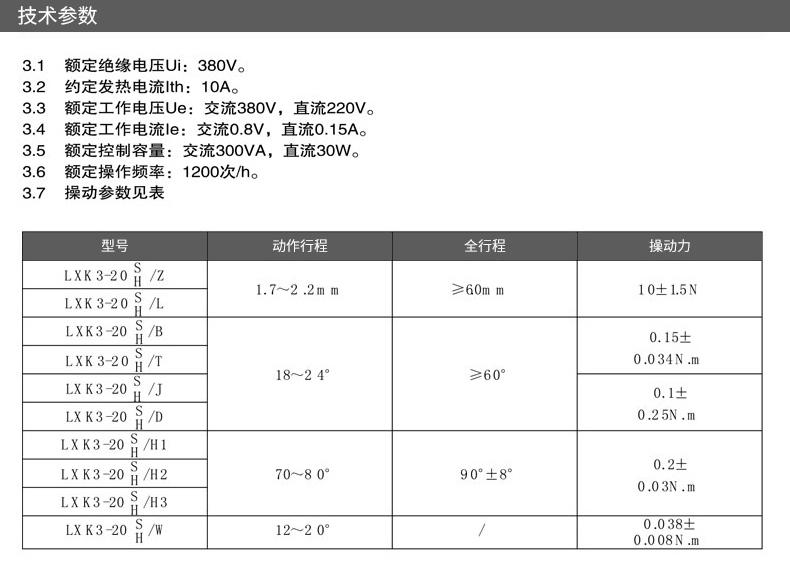LXK3-20S/W行程開關(guān)