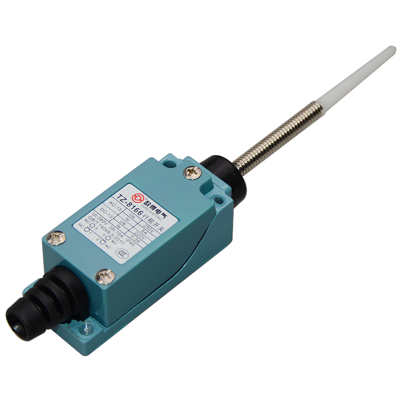 • TZ-8166行程開(kāi)關(guān),彈簧棒樹(shù)脂萬(wàn)向式,2回路型(1常開(kāi)1常閉)限位開(kāi)關(guān)。絕緣電壓380伏,耐沖擊電壓2.5kV,發(fā)熱電流10安培,交流工作電壓250伏、電流6安培,直流工作電壓220伏、電流0.3安培,防水等級(jí)IP40(安裝后)。產(chǎn)品標(biāo)準(zhǔn)和技術(shù)要求 GB/T14048.5-2017。